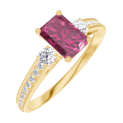 Inel Aur galben 18 carate - Rubin Smarald 0.5 carate - Pietre laterale Diamant - Încrustare Diamant