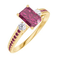 Inel Aur galben 18 carate - Rubin Smarald 0.5 carate - Pietre laterale Diamant - Încrustare Rubin