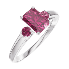Inel Aur alb 9 carate - Rubin Smarald 0.5 carate - Pietre laterale Rubin