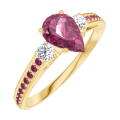 Inel Aur galben 18 carate - Rubin Pară 0.5 carate - Pietre laterale Diamant - Încrustare Rubin