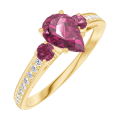 Inel Aur galben 18 carate - Rubin Pară 0.5 carate - Pietre laterale Rubin - Încrustare Diamant