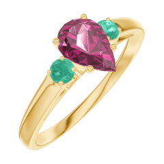 Inel Aur galben 9 carate - Rubin Pară 0.5 carate - Pietre laterale Smarald