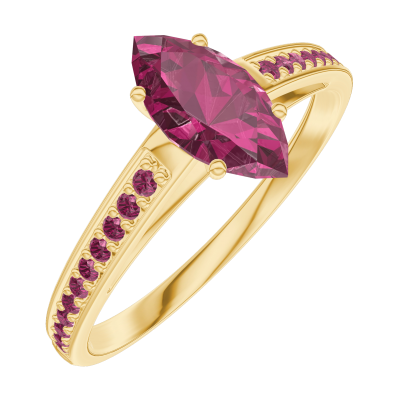« L'ATELIER » Nº163510Inel Aur galben 9 carate - Rubin Marquise 0.5 carate - Încrustare Rubin