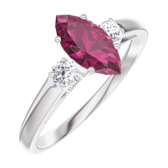 « L'ATELIER » NR. 163524Inel Aur alb 9 carate - Rubin Marquise 0.5 carate - Pietre laterale Diamant