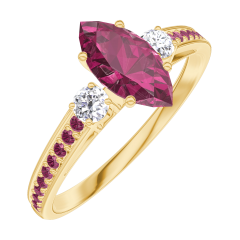 Inel Aur galben 18 carate - Rubin Marquise 0.5 carate - Pietre laterale Diamant - Încrustare Rubin