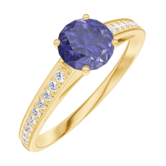 Inel Aur galben 18 carate - Safir albastru rotund 0.5 carate - Încrustare Diamant