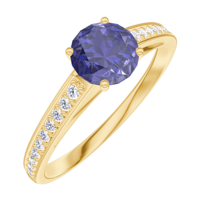 « L'ATELIER » NR. 163605Inel Aur galben 18 carate - Safir albastru rotund 0.5 carate - Încrustare Diamant 4.9