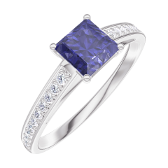 Inel Aur alb 9 carate - Safir albastru Princess 0.5 carate - Încrustare Diamant