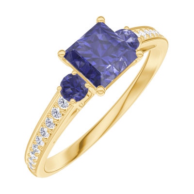 « L'ATELIER » NR. 163766Inel Aur galben 9 carate - Safir albastru Princess 0.5 carate - Pietre laterale Safir albastru - Încrustare Diamant