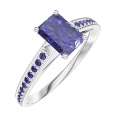 Inel Aur alb 9 carate - Safir albastru Smarald 0.5 carate - Încrustare Safir albastru