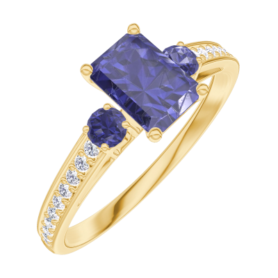 « L'ATELIER » NR. 163865Inel Aur galben 18 carate - Safir albastru Smarald 0.5 carate - Pietre laterale Safir albastru - Încrustare Diamant