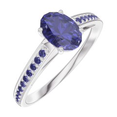 Inel Aur alb 18 carate - Safir albastru Oval 0.5 carate - Încrustare Safir albastru