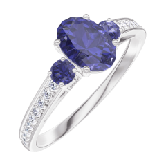 Inel Aur alb 9 carate - Safir albastru Oval 0.5 carate - Pietre laterale Safir albastru - Încrustare Diamant