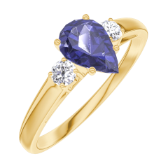 Inel Aur galben 18 carate - Safir albastru Pară 0.5 carate - Pietre laterale Diamant