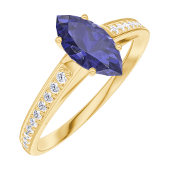 Inel Aur galben 9 carate - Safir albastru Marquise 0.5 carate - Încrustare Diamant
