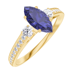 Inel Aur galben 9 carate - Safir albastru Marquise 0.5 carate - Pietre laterale Diamant - Încrustare Diamant