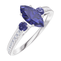 Inel Aur alb 9 carate - Safir albastru Marquise 0.5 carate - Pietre laterale Safir albastru - Încrustare Diamant