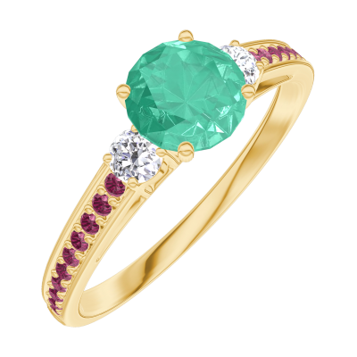 « L'ATELIER » NR. 164229Inel Aur galben 18 carate - Smarald rotund 0.5 carate - Pietre laterale Diamant - Încrustare Rubin 4.9