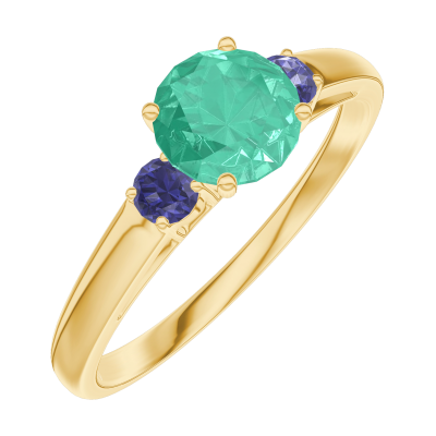« L'ATELIER » NR. 164261Inel Aur galben 18 carate - Smarald rotund 0.5 carate - Pietre laterale Safir albastru 4.9 (16)
