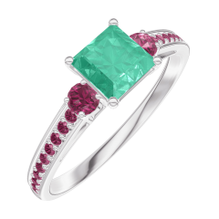 Inel Aur alb 9 carate - Smarald Princess 0.5 carate - Pietre laterale Rubin - Încrustare Rubin