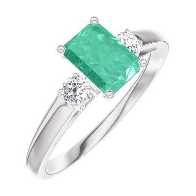« L'ATELIER » NR. 164423Inel Aur alb 18 carate - Smarald Smarald 0.5 carate - Pietre laterale Diamant