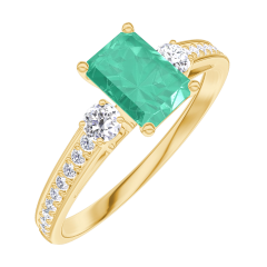 Inel Aur galben 18 carate - Smarald Smarald 0.5 carate - Pietre laterale Diamant - Încrustare Diamant