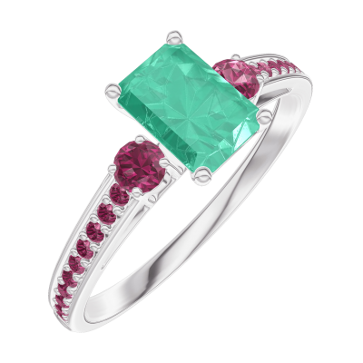 « L'ATELIER » NR. 164451Inel Aur alb 18 carate - Smarald Smarald 0.5 carate - Pietre laterale Rubin - Încrustare Rubin