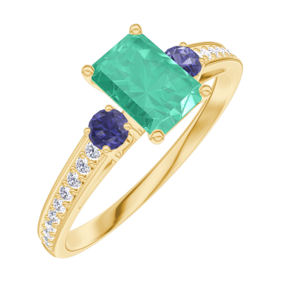 « L'ATELIER » NR. 164466Inel Aur galben 9 carate - Smarald Smarald 0.5 carate - Pietre laterale Safir albastru - Încrustare Diamant