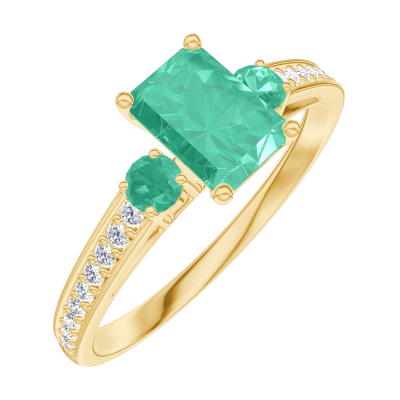« L'ATELIER » NR. 164486Inel Aur galben 9 carate - Smarald Smarald 0.5 carate - Pietre laterale Smarald - Încrustare Diamant