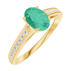 Inel Aur galben 18 carate - Smarald Oval 0.5 carate - Încrustare Diamant
