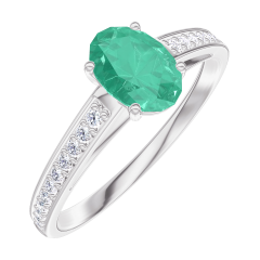 Inel Aur alb 18 carate - Smarald Oval 0.5 carate - Încrustare Diamant