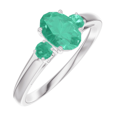 Inel Aur alb 9 carate - Smarald Oval 0.5 carate - Pietre laterale Smarald