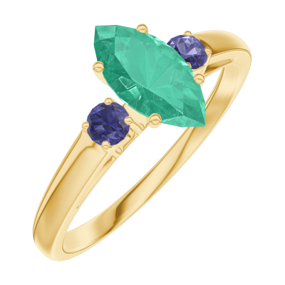 « L'ATELIER » NR. 164762Inel Aur galben 9 carate - Smarald Marquise 0.5 carate - Pietre laterale Safir albastru