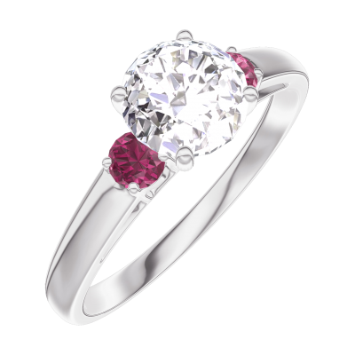« L'ATELIER » Nº164843Inel Aur alb 18 carate - Diamant rotund 0.7 carate - Pietre laterale Rubin 5 (7)