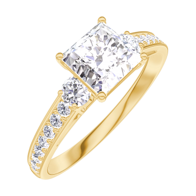 « L'ATELIER » NR. 164926Inel Aur galben 9 carate - Diamant Princess 0.7 carate - Pietre laterale Diamant - Încrustare Diamant