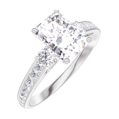Inel Aur alb 18 carate - Diamant Smarald 0.7 carate - Pietre laterale Diamant - Încrustare Diamant