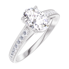 Inel Aur alb 9 carate - Diamant Oval 0.7 carate - Încrustare Diamant