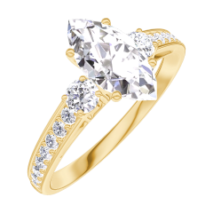 Inel Aur galben 9 carate - Diamant Marquise 0.7 carate - Pietre laterale Diamant - Încrustare Diamant
