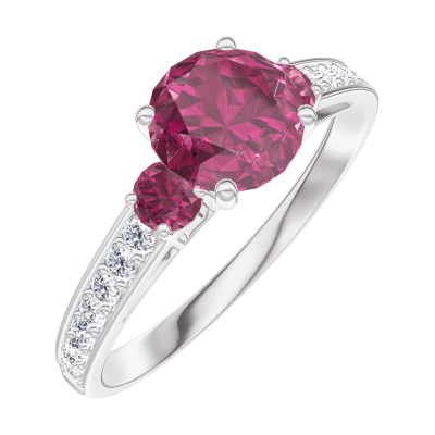 « L'ATELIER » NR. 165447Inel Aur alb 18 carate - Rubin rotund 0.7 carate - Pietre laterale Rubin - Încrustare Diamant 5