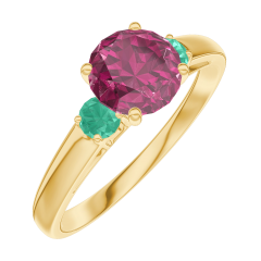 Inel Aur galben 9 carate - Rubin rotund 0.7 carate - Pietre laterale Smarald