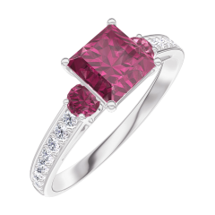 Inel Aur alb 9 carate - Rubin Princess 0.7 carate - Pietre laterale Rubin - Încrustare Diamant