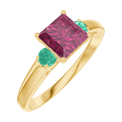 « L'ATELIER » NR. 165581Inel Aur galben 18 carate - Rubin Princess 0.7 carate - Pietre laterale Smarald