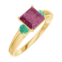 « L'ATELIER » NR. 165582Inel Aur galben 9 carate - Rubin Princess 0.7 carate - Pietre laterale Smarald