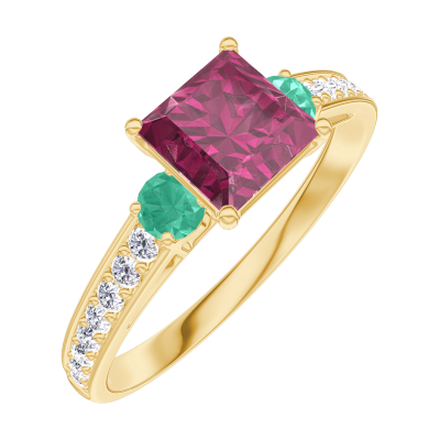 « L'ATELIER » NR. 165585Inel Aur galben 18 carate - Rubin Princess 0.7 carate - Pietre laterale Smarald - Încrustare Diamant