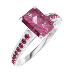Inel Aur alb 9 carate - Rubin Smarald 0.7 carate - Încrustare Rubin