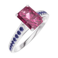 Inel Aur alb 9 carate - Rubin Smarald 0.7 carate - Încrustare Safir albastru