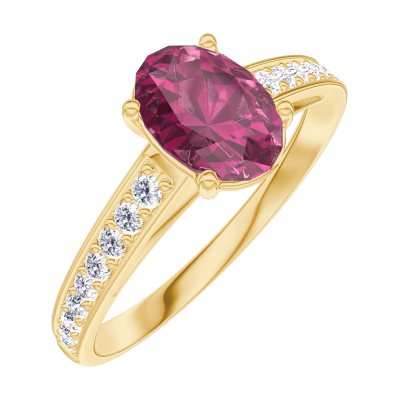 « L'ATELIER » NR. 165706Inel Aur galben 9 carate - Rubin Oval 0.7 carate - Încrustare Diamant