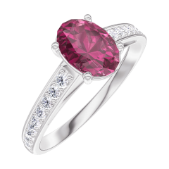 Inel Aur alb 18 carate - Rubin Oval 0.7 carate - Încrustare Diamant