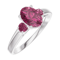 Inel Aur alb 9 carate - Rubin Oval 0.7 carate - Pietre laterale Rubin