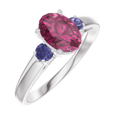 « L'ATELIER » NR. 165763Inel Aur alb 18 carate - Rubin Oval 0.7 carate - Pietre laterale Safir albastru